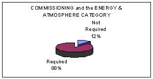 The Energy & Atmosphere category includes three prerequisites and a possible seventeen points. One of the prerequisites is Fundamental Building Systems Commissioning another prerequisite Minimum Energy Performance requires commissioning. Two thirds of the prerequisites in the E&A category require commissioning. There are seventeen possible points in the E&A category; fifteen of the points require commissioning (see Figure 1).